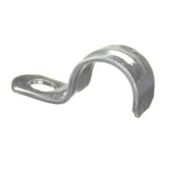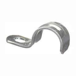 The 1/2 in. EMT 1-Hole Straps (25-Pack) secure EMT conduit to wood, masonry or other surfaces that require increased load bearing. The straps are made of zinc-plated steel and designed for indoor or outdoor use. Strap positively snaps on the conduit when installed.