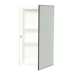 This 16 in. X 26 in. Recessed Mirrored Medicine Cabinet is pre-assembled for fast, easy installation on either a recessed or smooth surface. The cabinet’s two sturdy shelves can be adjusted to suit your unique needs. Its frameless, beveled mirror has prismatic edges that create a modern, stylish appearance. A reversible door makes this cabinet’s door easy to open with either the left or right hand.