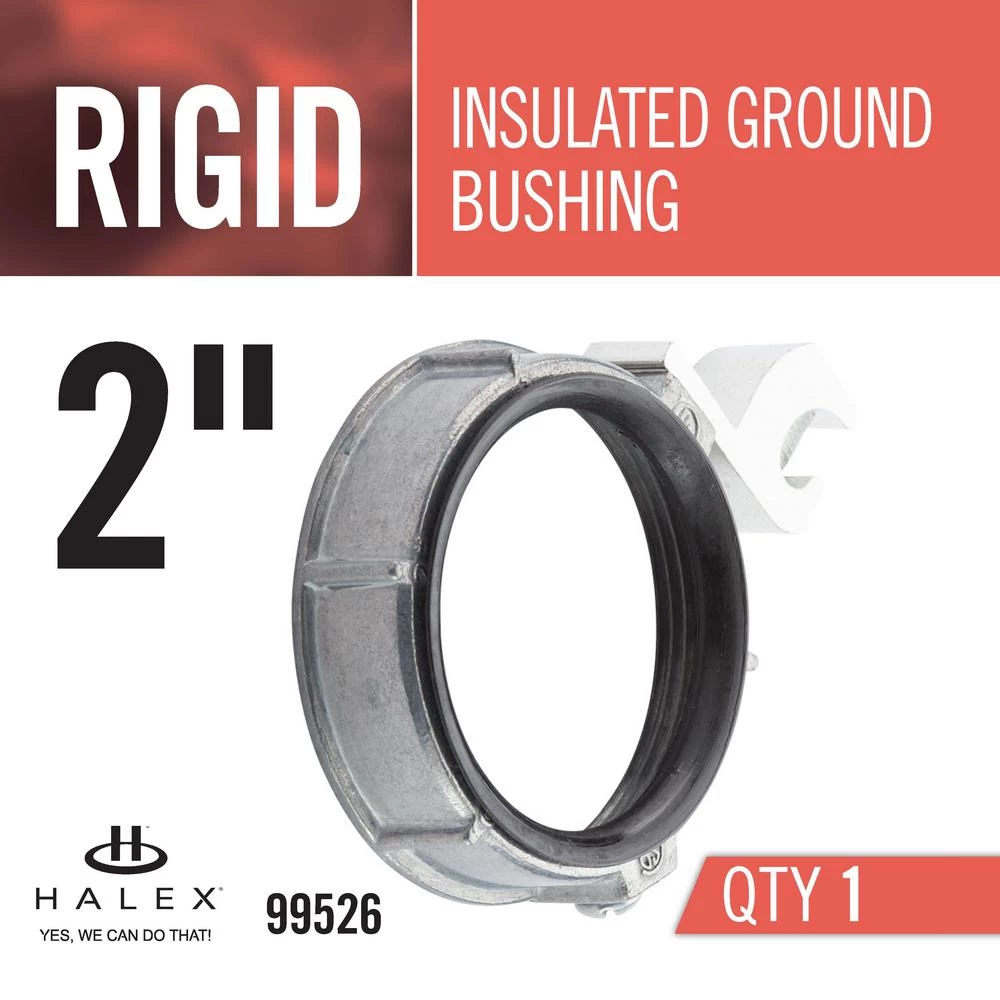 The 2 in. Insulated Metallic Grounding Bushing provides a means of grounding threaded rigid conduit or intermediate metal conduit (IMC). The zinc alloy bushing with thermoplastic liner is non-corrosive. It is suitable for use indoors only.