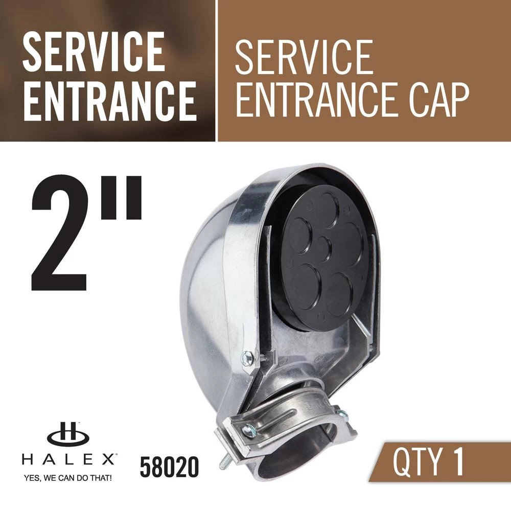 The 2 in. Service Entrance Cap is designed for use in overhead service entrances with rigid conduit, intermediate metal conduit (IMC) or EMT conduit. The cap serves as a connecting point for the service entrance wires.