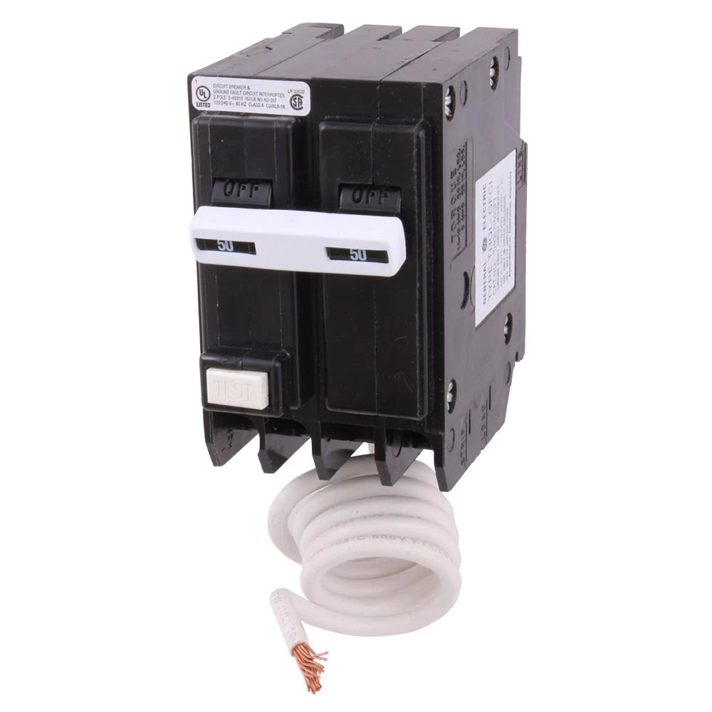 The GE 20 Amp Double Pole Ground Fault Circuit Breaker with Self-Test has a tin plated copper stab to create a reliable, permanent and corrosion resistant connection. The Self-Test functionality is a UL requirement on all GFCI devices commencing in June 2015. This variant of the GFCI ensures its ground circuitry is functioning properly by automatically running diagnostic testing on a periodic basis. Should a problem be detected, the circuit breaker will trip and will need to be replaced.