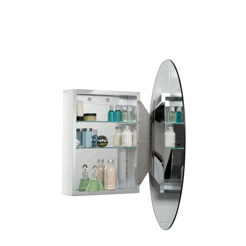 This functional and slick cabinet is a must-have for any bathroom type. The Orwell Single Door Oval Cabinet houses two adjustable glass shelves concealed behind 2-mirrored doors. This cabinet features patented Hang N Lock system, meaning the bracket is fixed to the wall rather than the cabinet itself; perfected with the aid of a built-in spirit level. Therefore banishing the need to support your product in one arm, whilst attempting to accurately measure and mark distances, and screw holes with the other.