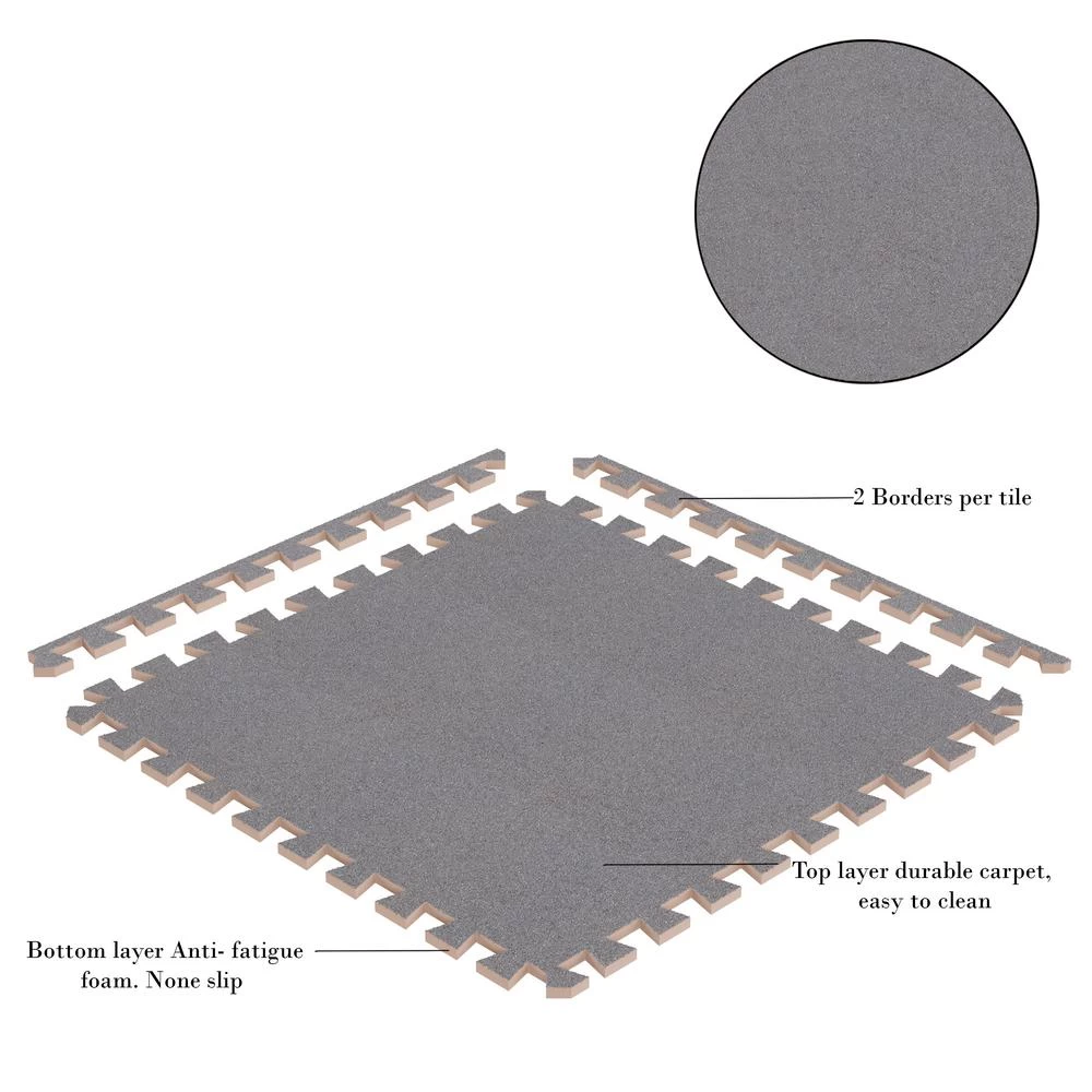 - SOFT AND DURABLE- These Gray EVA foam mats are topped with a soft carpet, made from durable and easy to clean Polyester, and are a comfortable and practical addition to any room.