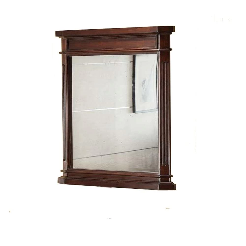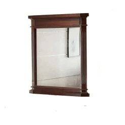 The 26 in. W x 30-1/8 in. H x 2-3/16 in. D Mirror in Cherry is hanging on the wall and is ideal for saving space. Cherry finish is sure to complement your decor. With its clean and classic design to pair it with a matching vanity for a coordinated set.