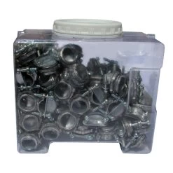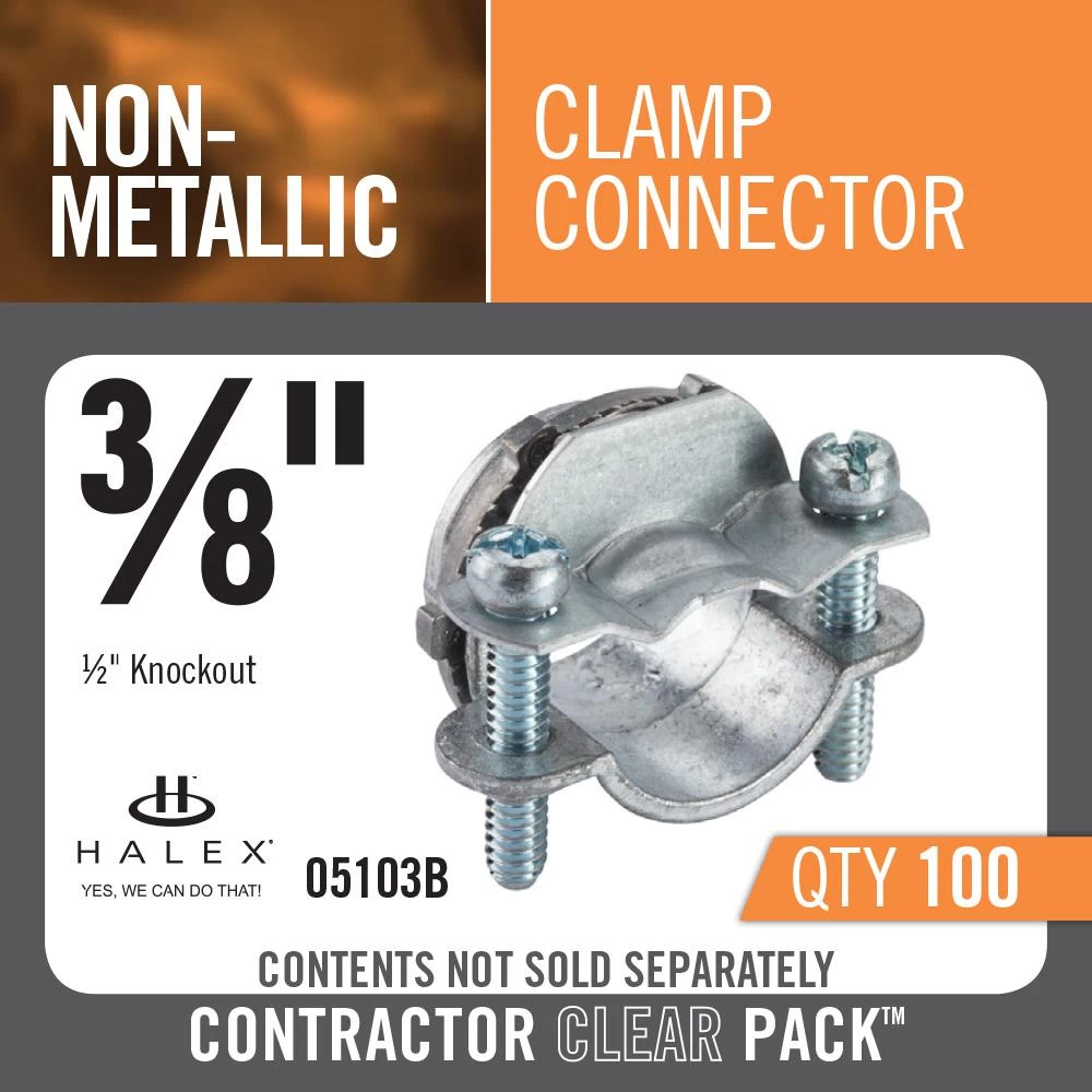 Use the 3/8 in. Twin Screw Clamp Connectors (100-Pack) to connect non-metallic sheathed cable to steel outlet boxes. The connectors are designed for indoor use only and fit standard 1/2 in. knockouts. They are made of zinc and are corrosion resistant.