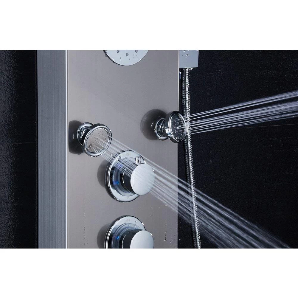 Premium multi-function shower massage panel with LED shower head for home and commercial use. Panel’s body is made of 304 stainless steel, cool 5 functions: rainfall, mist, massage jets, tub spout, 3-setting handheld shower. The system has hot and cold integrated mixing valve controls and diverter to redirect water from one function to another. Paired with the fact that it is pre-plumbed for easy installation, makes easy to love for years to come. This excellent shower tower will provide you a comfortable experience, drive away fatigue, relax your mind and body after showering. Luxury color, easy to match modern room decorations.