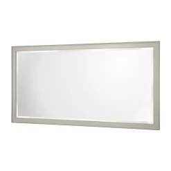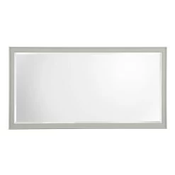 Finished in grey, the Gazette mirror features a beveled edged design framed with sturdy poplar. Clean lines and oversized dimensions will bring a distinctively dramatic and contemporary feel to the bathroom. This rectangular mirror is designed to mount horizontally, with brass mounting hardware conveniently attached for quick and easy hanging.