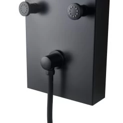- Slimline luxury shower panel has built-in rainfall waterfall showerhead, high-powered body spray jets and high-efficiency handheld shower wand