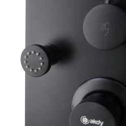 - All-in-one shower tower system designed for wall mount installation without difficult plumbing or drilling