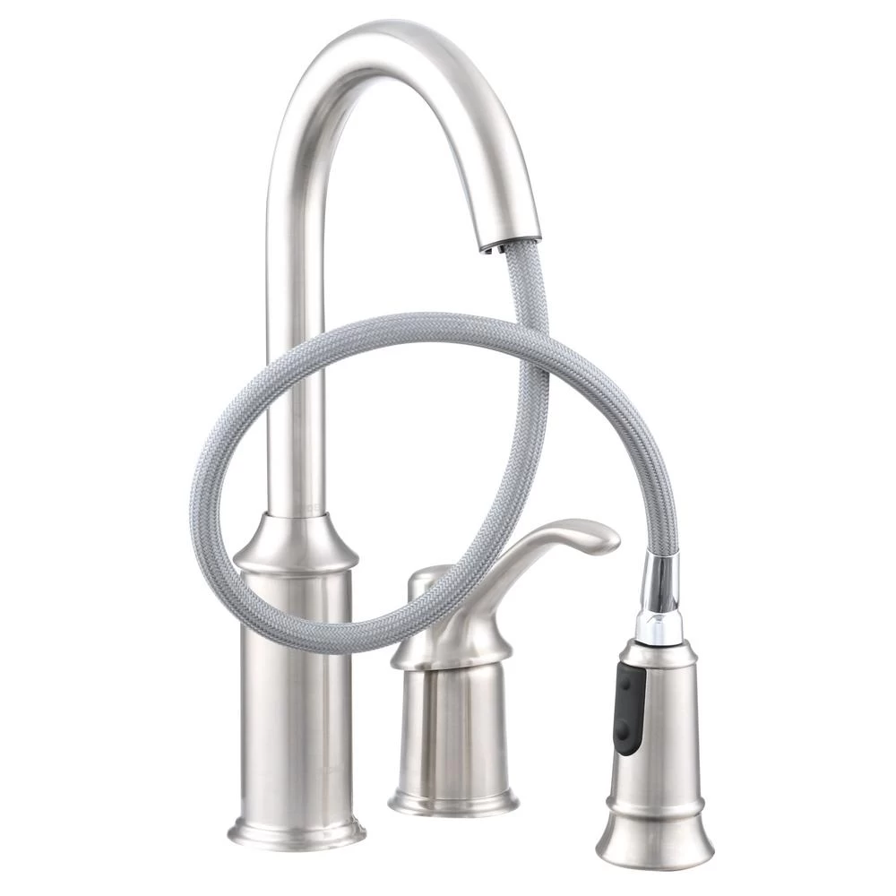 - Pull-down design reaches around your entire sink, offering at-your-fingertips water delivery