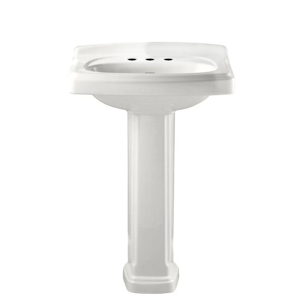 Engineered to provide durability and an elegant appearance, this American Standard Portsmouth vitreous china Pedestal Bathroom Sink Combo in White boasts a vitreous china construction and crisp white finish. The combo features 8 in. faucet drillings for widespread faucet applications (faucet sold separately) to achieve your desired look.