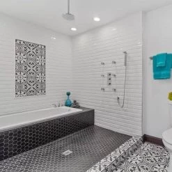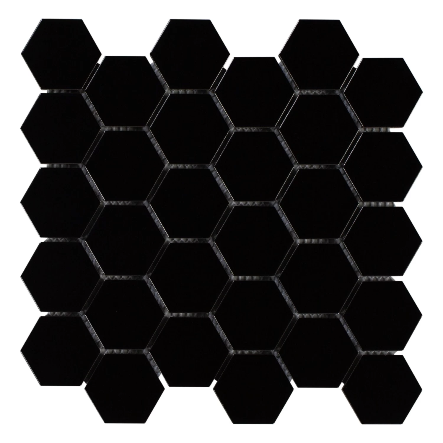 Whether you’re looking to create an accent piece or give a bigger area unique appeal, you can upgrade your space with Black Matte 2 in. Hexagon Porcelain Mosaic.
