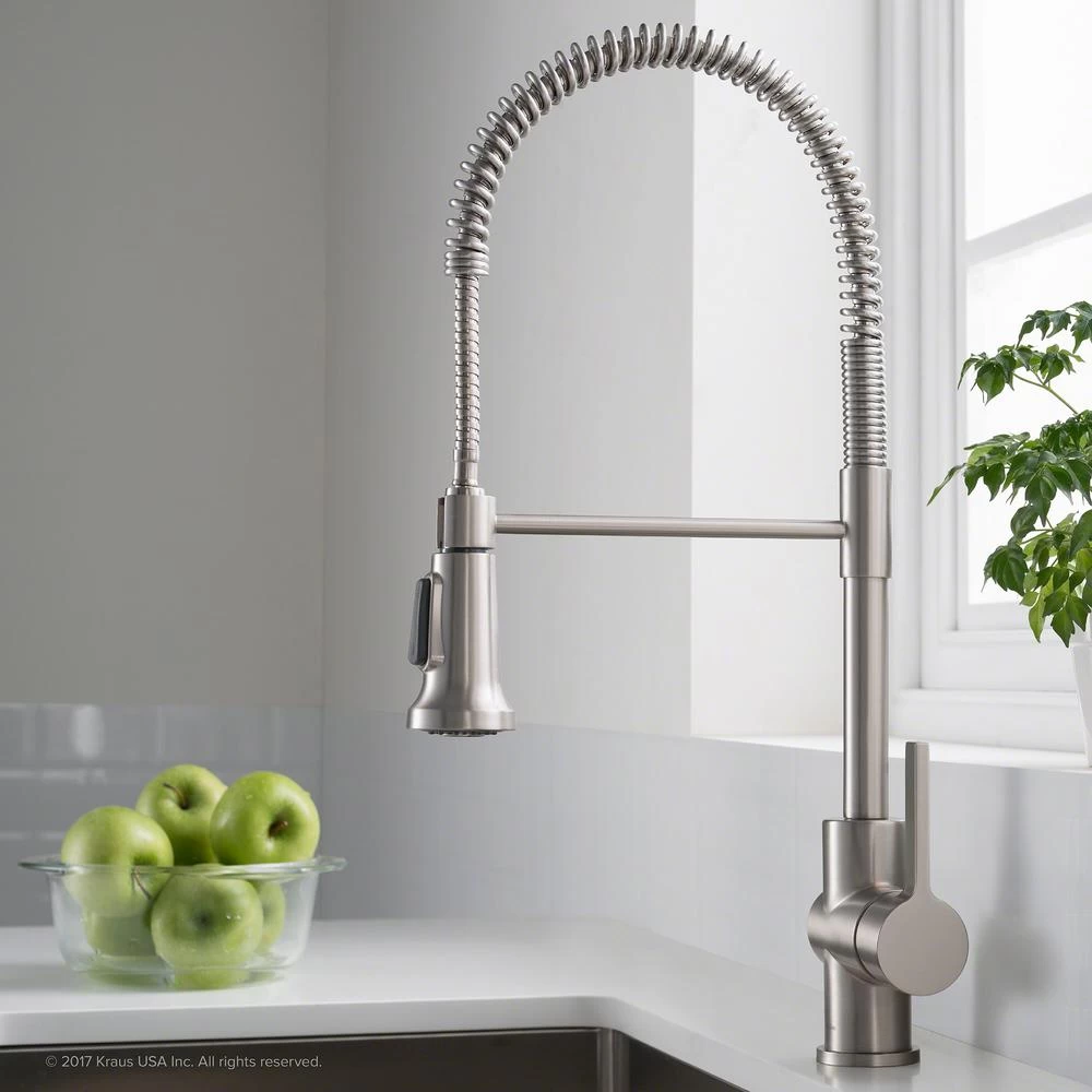 - Commercial-style design is both flexible and functional, with a heavy-duty open coil spring spout that creates an industrial look with modern appeal