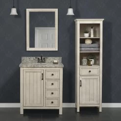 Bring a touch of farmhouse style to anywhere in your home with the Hiland 20″ x 68″ Linen Cabinet in Antique White. Combining a slightly rustic finish with square legs and a beaded inlay on the door front, this vanity will satisfy your need for simple design and a neutral palette. The Hiland linen cabinet can make a great piece on it’s own or perfectly pair it with other pieces of the Hiland collection, giving you extra storage anywhere you need it.