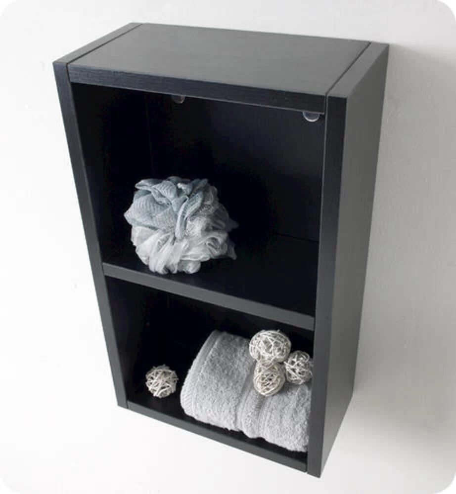 This small side cabinet comes with a Black finish. It features 2 open storage areas. It matches nicely with any Black vanity.