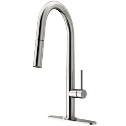Sleek and minimalist in design, the VIGO Greenwich Pull-Down Spray Kitchen Faucet is the perfect addition to any modern kitchen. The dual-action faucet features a dramatic high arch and clean lines. Easily switch from stream to spray for any kitchen needs. Solid brass construction and a corrosion-resistant finish make the pull-down faucet built to last. An included matching deck plate allows for easy transformation from 1,2,3, or 4-hole installations.