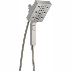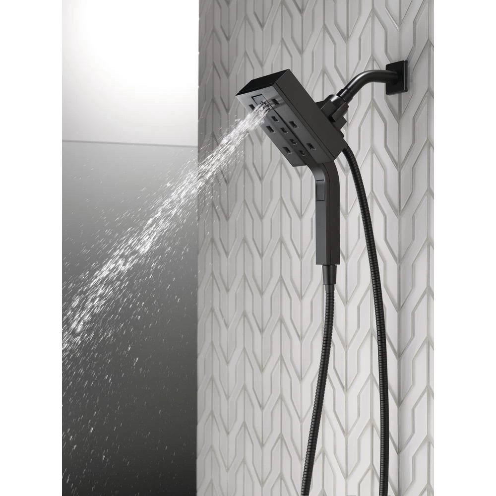 The Delta In2ition Two-in-One Shower features a detachable hand shower which can be used separately from or simultaneously with the shower head. This integrated dual-functionality gives you maximum flexibility without sacrificing warmth, as you can choose to have water streaming from the shower head only, the hand shower only or both the shower head and hand shower at once. H2Okinetic showers sculpt water into a unique wave pattern, giving you more coverage than a standard shower head. The end result is a shower that provides more coverage, more warmth and more intensity for a truly drenching shower experience. Delta MagnaTite Docking uses a powerful integrated magnet to pull your faucet spray wand or In2ition hand shower precisely into place and hold it there so it stays docked when not in use. While other products may gather unsightly mineral build-up over time, Delta soft rubber Touch-Clean spray holes allow any mineral residue to simply be wiped away for an instantly refreshed look – with no need for soaking or the aid of chemical cleaners. The pause setting gives you ample space for shaving, lathering and other shower tasks, then easily restarts the water with the temperature where you left off. This spray setting helps you conserve water, so you can worry less about depleting your supply of hot water and you help the environment too. Delta WaterSense labeled showers use at least 20% less water than the industry standard-saving you money without compromising performance.