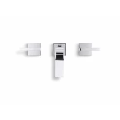 Two-handle widespread lavatory faucet for 8-in to 16-in centers features unique recessed valve installation
