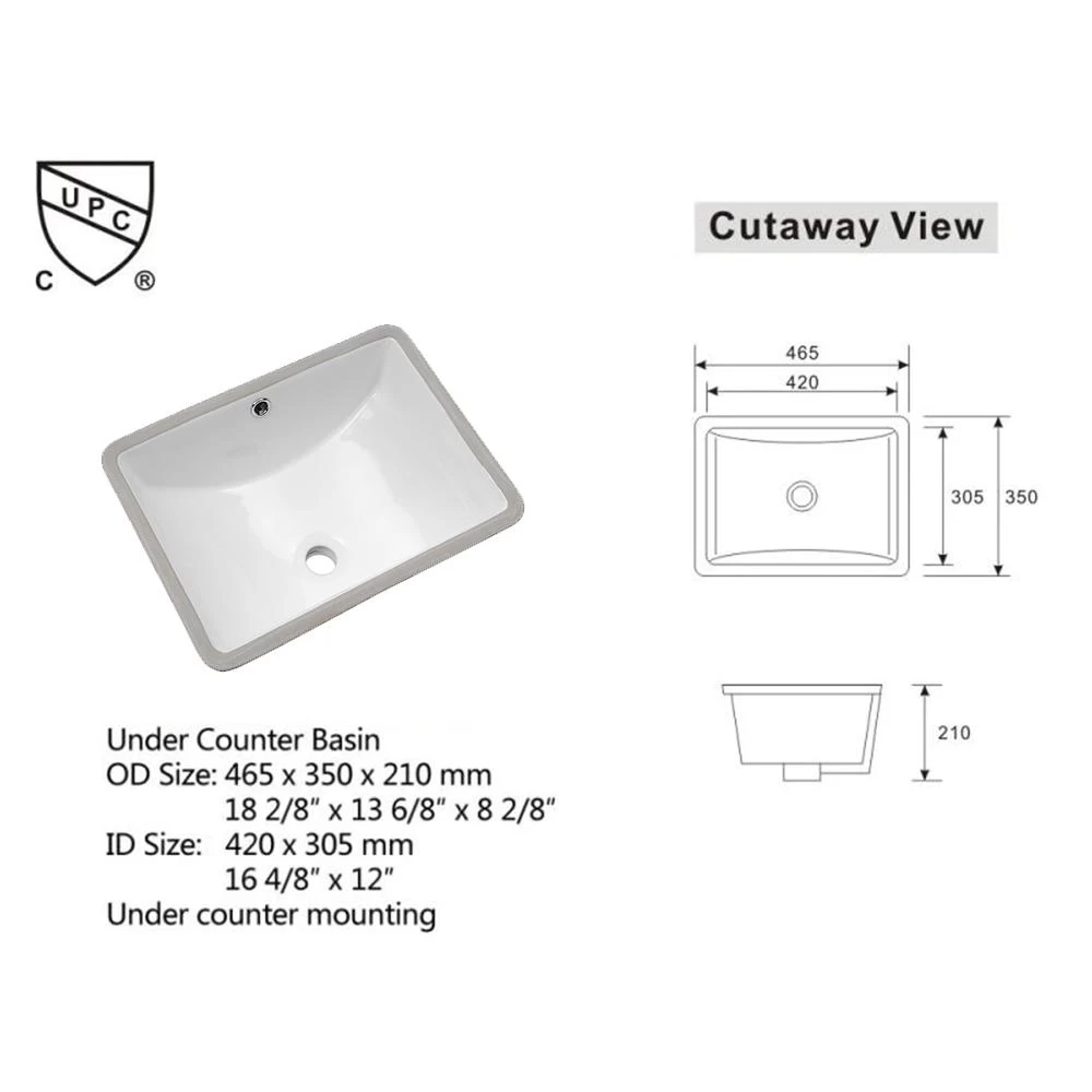 - Installation: undercounter installation, suitable drain size: 1-3/4 in.