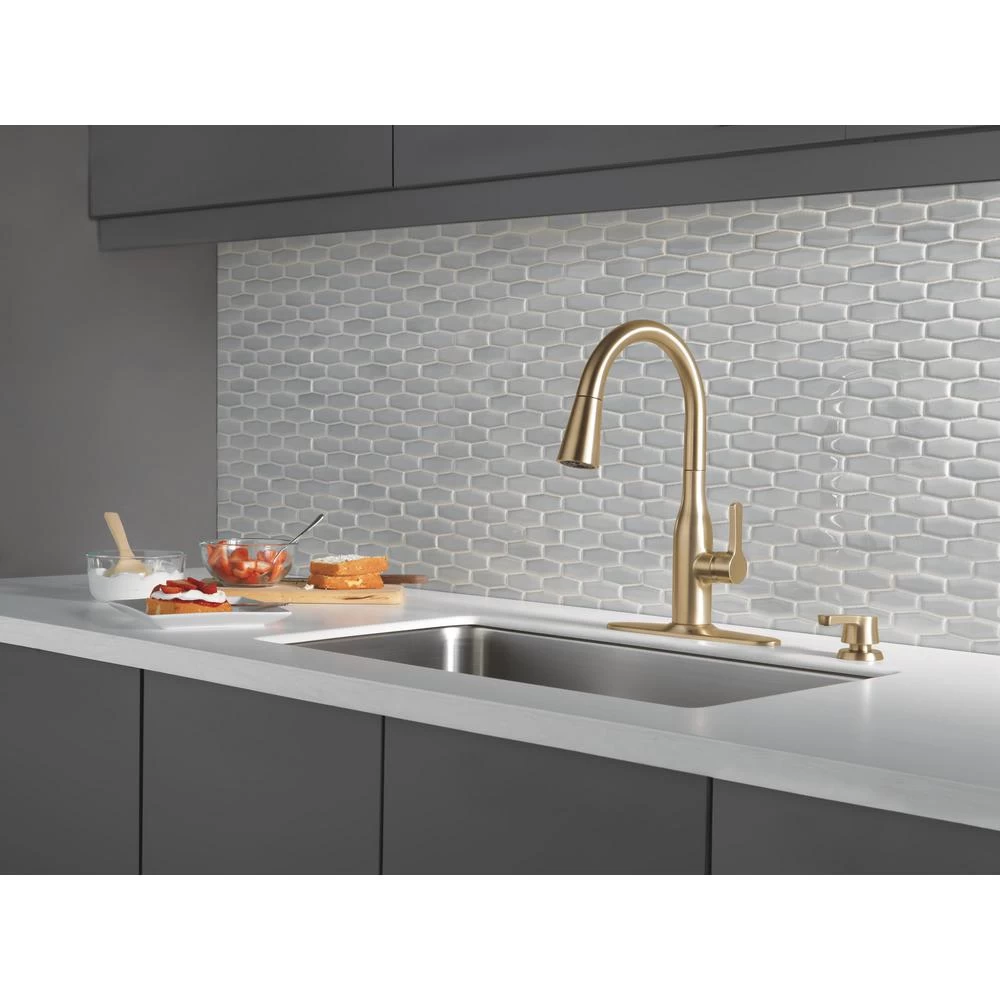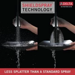Delta MagnaTite Docking uses a powerful integrated magnet to pull your faucet spray wand precisely into place and hold it there so it stays docked when not in use. Delta ShieldSpray Technology cleans with laser-like precision while containing mess and splatter. A concentrated jet powers away stubborn messes while an innovative shield of water contains splatter and clears off the mess, so you can spend less time soaking, scrubbing, and shirt swapping. Delta faucets with DIAMOND Seal Technology perform like new for life with a patented design which reduces leak points, is less hassle to install and lasts twice as long as the industry standard. Kitchen faucets with Touch-Clean Spray Holes allow you to easily wipe away calcium and lime build-up with the touch of a finger. You can install with confidence, knowing that Delta faucets are backed by our Lifetime Limited Warranty. Industry standard is based on ASME A112.18.1 of 500,000 cycles.
