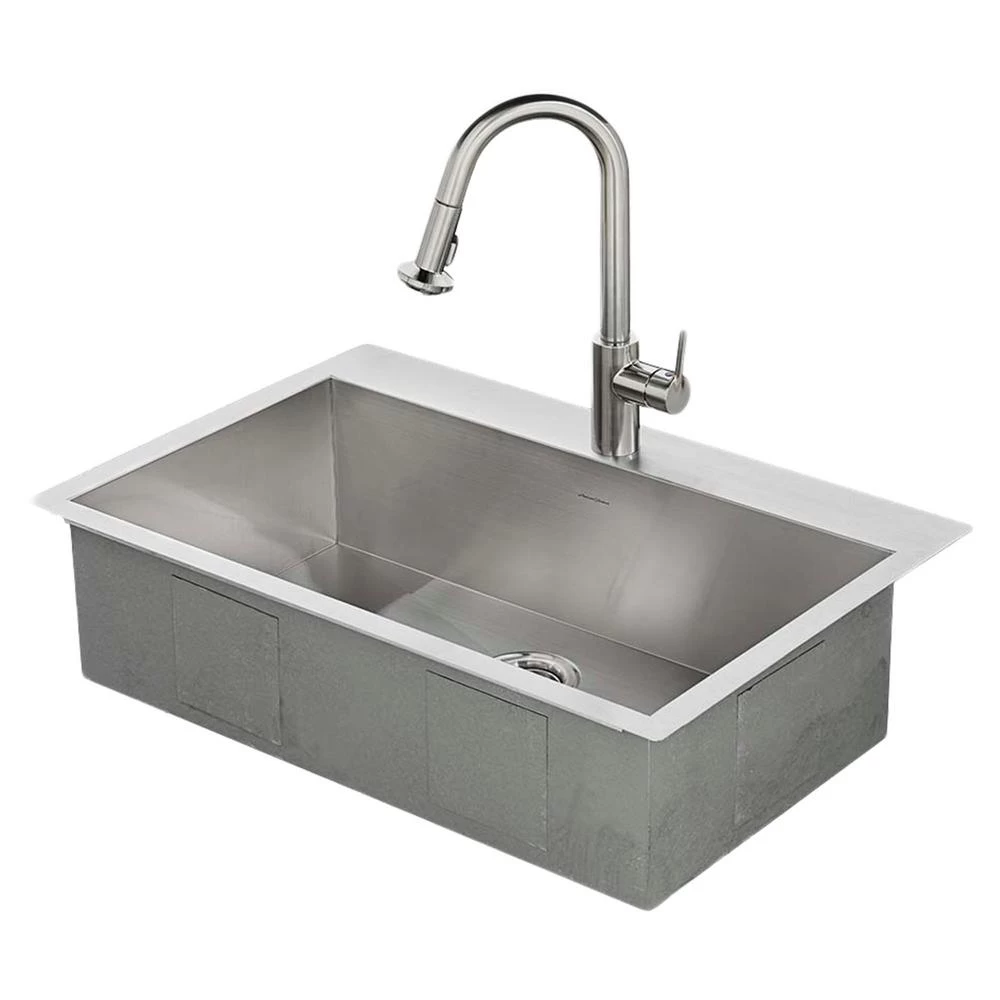 The Memphis Single-Handle Pull-Down Dual-Spray Kitchen Faucet is engineered to deliver the dependable performance you expect from American Standard. Featuring a high-arch, swivel spout, this design makes filling large pots quick and easy. The easy-grip, pull-down, 2-function spray head with toggle has ample reach within the sink and features regular stream and powerful spray for rinsing dishes or cleaning the sink. Scratch- and stain-resistant finish makes this impressive style a brilliant focal point.