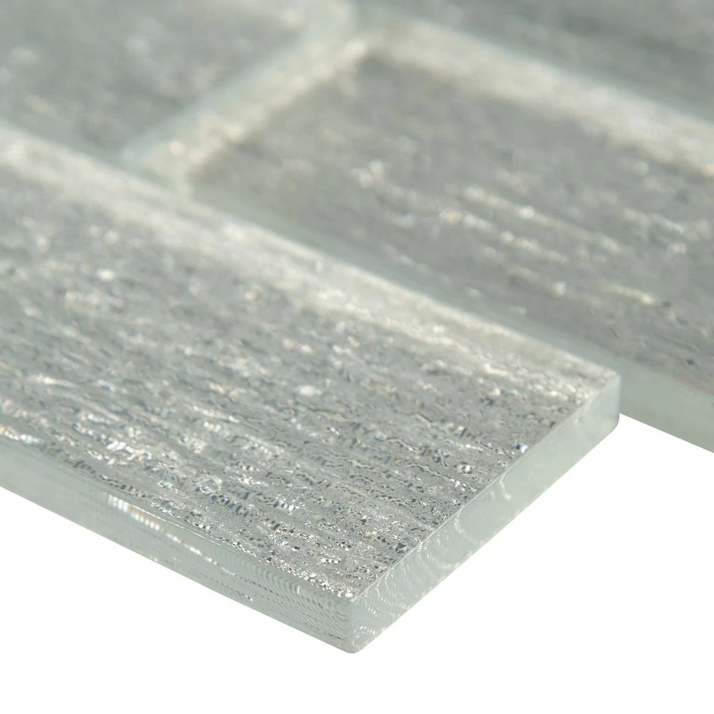 - 11.81 in. width x 11.81 in. length x 10mm thick mesh-mounted mosaic: 1 in. width x 3 in. length brick pieces in subway pattern.