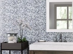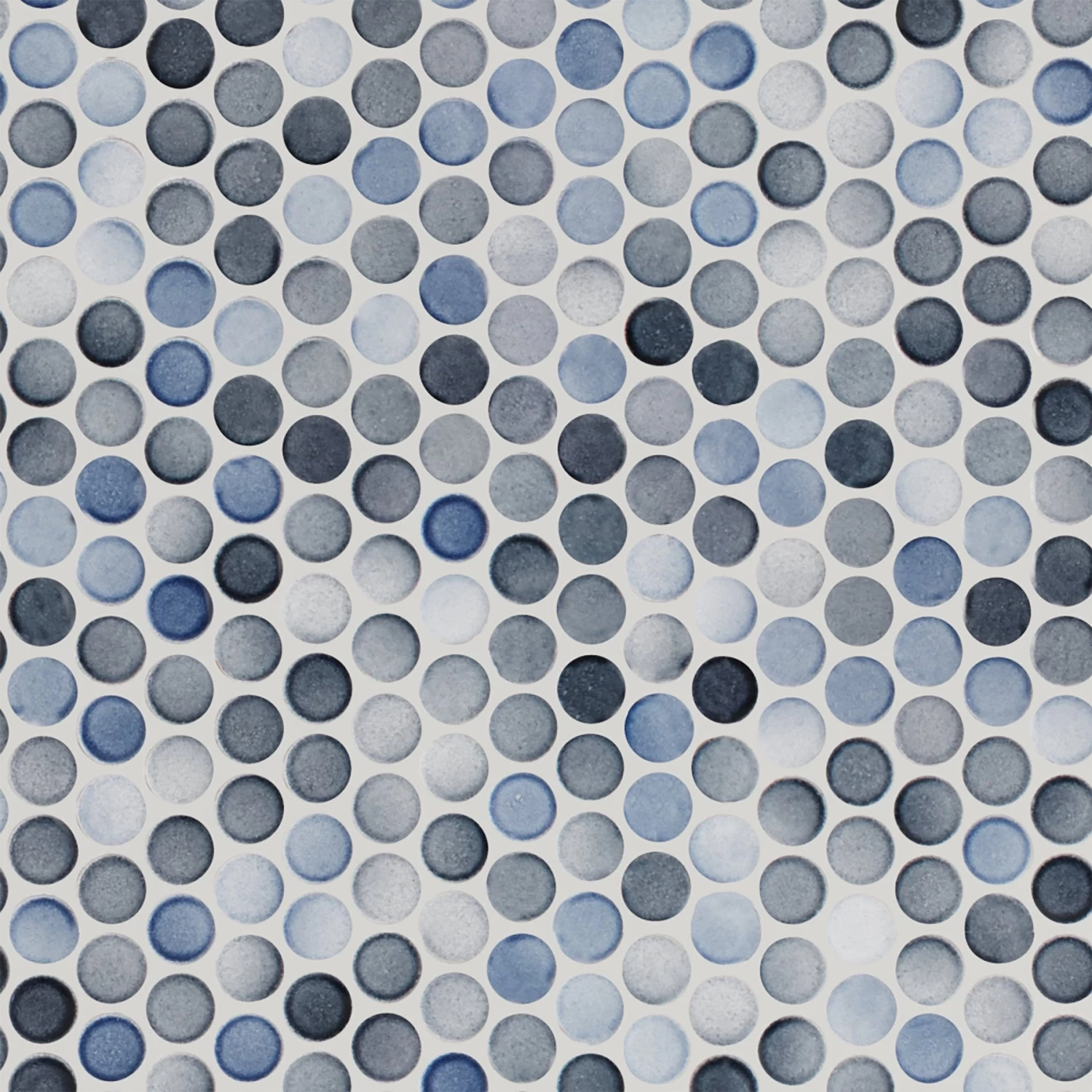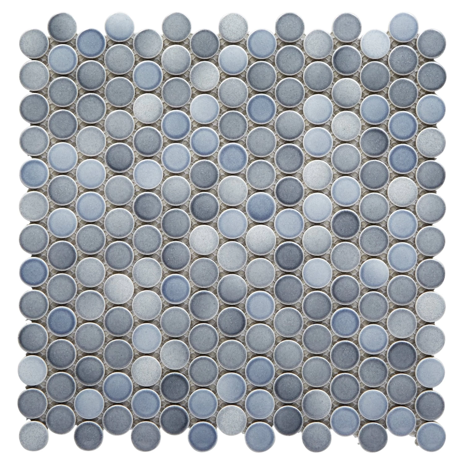 For an elevated look to your design, choose the Multi Gray Polished Porcelain Penny Mosaic with a polished or high gloss finish. Use this blue tile to add new visual interest in any space like the bathroom, kitchen, living room, and more.