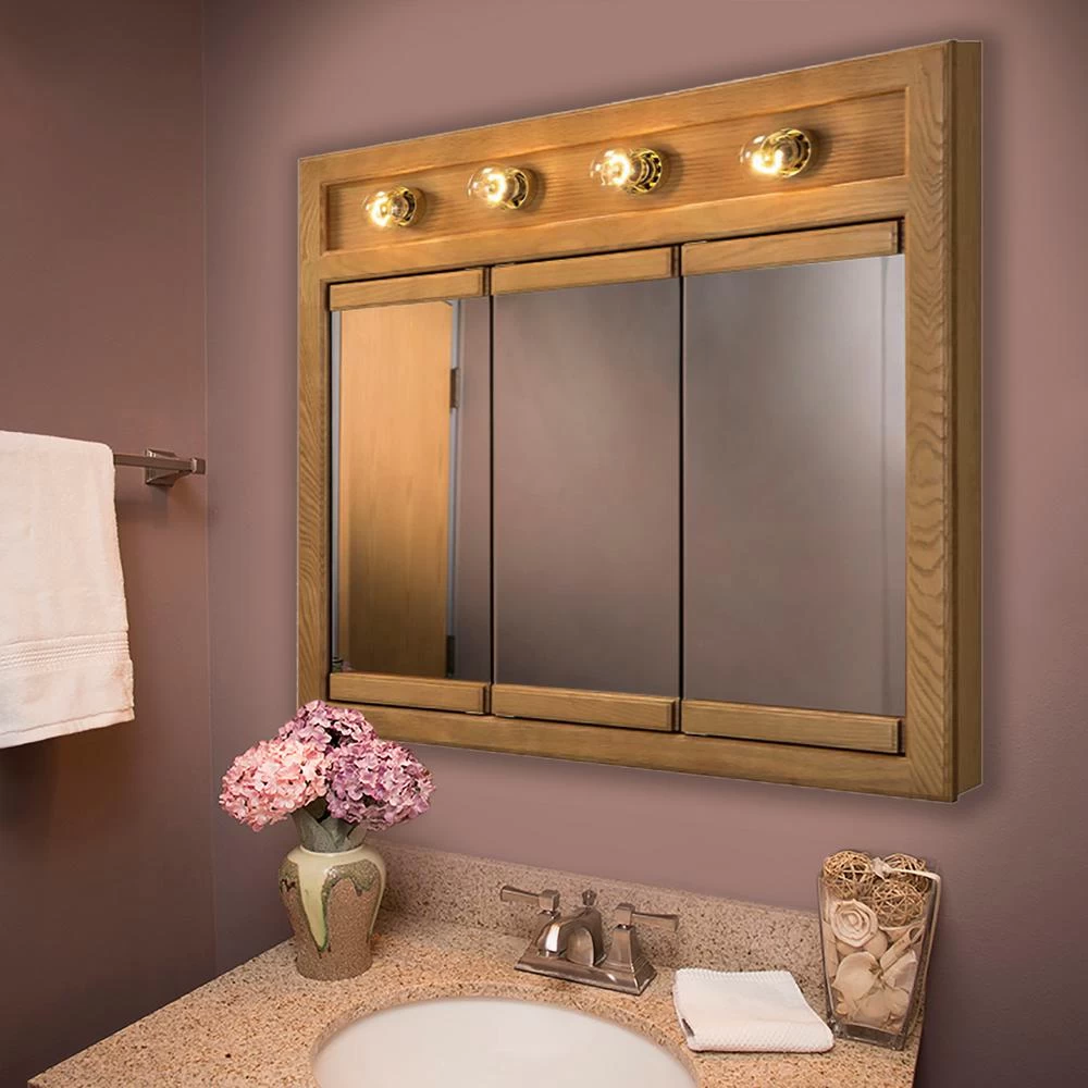 - 24 in. W x 30 in. H tri-view medicine cabinet provides ample storage for rooms with limited space