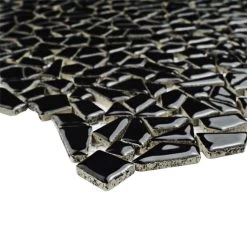 Imitating the erratic look of Trencadís, the Jazz Black 11-1/4 in. x 11-1/4 in. x 5 mm Ceramic Mosaic Tile features a variety of small tile shards strategically placed on an interlocking mesh. Let your imagination take you wherever it wants to go with the random design of this sporadic mosaic. Each chip features a different size and shape in a uniform black tone, allowing for a one-of-a-kind look every time. The strong mesh backing makes installation easier and the interconnecting format makes helps create a seamless appearance. This vitreous tile is suitable for medium-duty interior settings, including kitchens, powder rooms, backsplashes and fireplace facades. Use this as a field tile, paired with the coordinating Jazz series or as an accent to many of our other products.