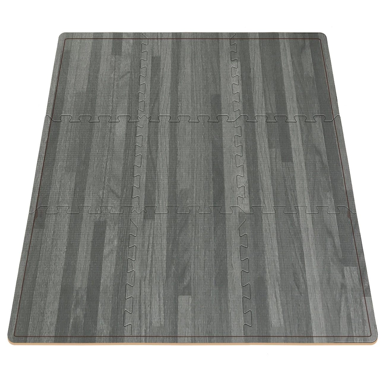 - WOOD GRAIN FLOOR MAT — Provides comfort and cushion to hard floor surfaces with classic faux wood finish — Includes 9 floor mat wood grain tiles to enhance the comfort and appearance of your space