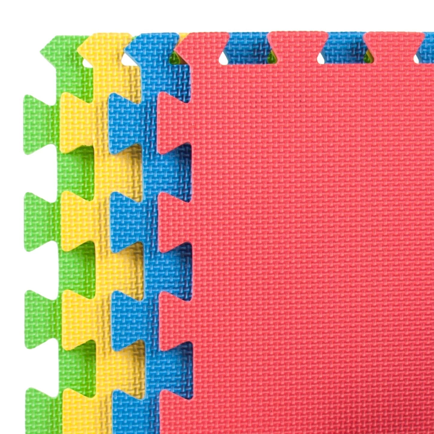 Made of soft, colorful foam, this Tadpoles by Sleeping Partners 36-Piece Playmat Set provides a cushiony, comfortable place for your child to play. The interlocking pieces cover 36 square feet and feature bright primary colors.Tadpoles 36 Piece Playmat Primary Set, Multi