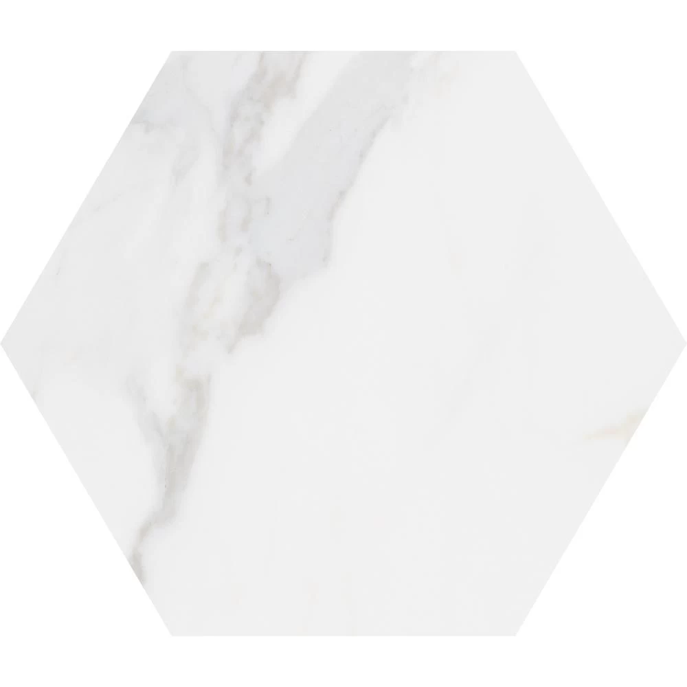 Sophisticated and elegant, this glazed porcelain hexagon creates depth and dimension adding visual appeal. Sixteen unique Carrara faces provide endless design opportunities to suit a variety of styles and settings from modern to classic. This versatile and elegant format allows for a wide array of installations that will bring a unique design element to any space both residential or commercial.
