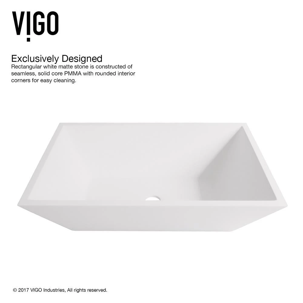 - Matte Stone: proprietary to the VIGO brand, Matte Stone is a seamless, solid-core composite that resists scratches, impact and discoloration
