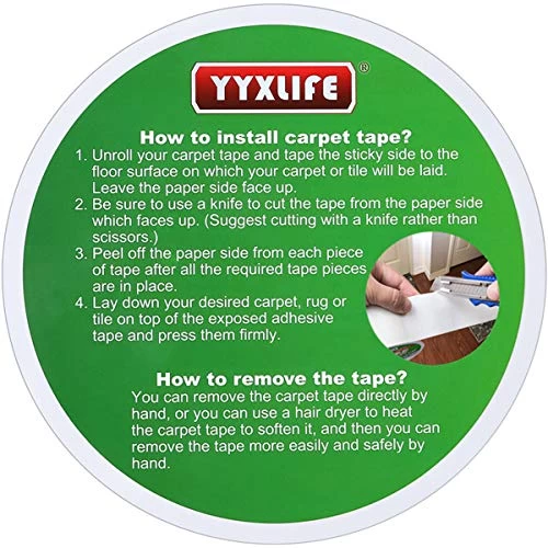yyxlife carpet tape is a variant of rug tape.tape is available in 2″ x 30 yards, 2″ x 10 yards.you can choose the size you wantrug tape is one of the pioneers in the world of double sided tape heavy duty bonding technology.rug gripper is a durable and heavy duty tape that prevents the tape from curling,sliding or moving,double sided carpet tape heavy duty can be repositioned without damaging your flooring material or finish.