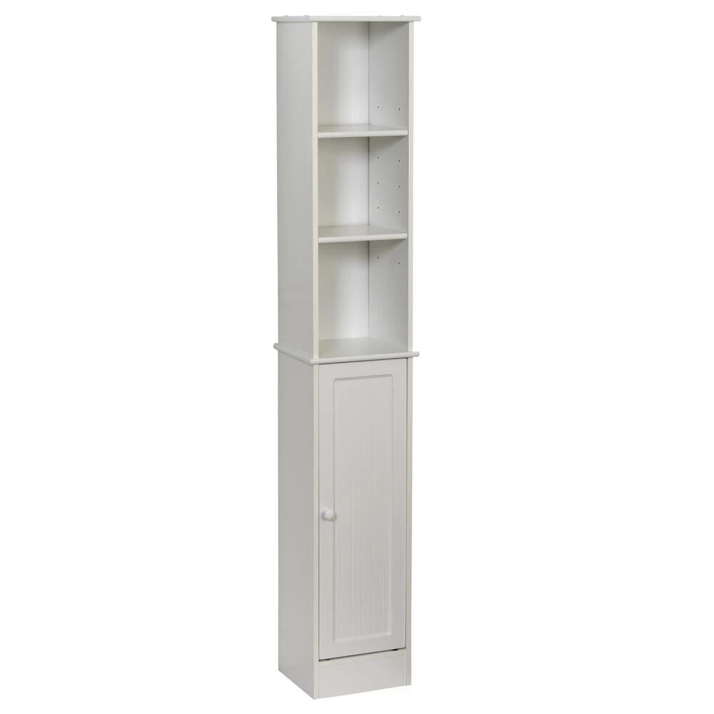 The Linen Cabinet creates valuable storage in a compact-sized unit that will fit into even small rooms. The tower has three adjustable wood shelves, including a mix of open and concealed storage. Use the cabinet to store linens and bath items, or to display decorative accessories. Assembly is easy.